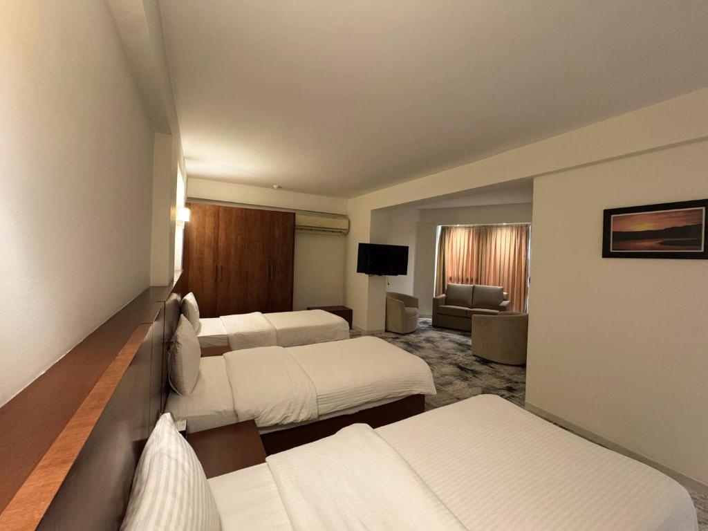 Comfortable Accommodations: Coral Hotel Karbala in Karbala offers family rooms with air-conditioning, private bathrooms, and modern amenities. Each room includes a tea and coffee maker, refrigerator, and free toiletries.