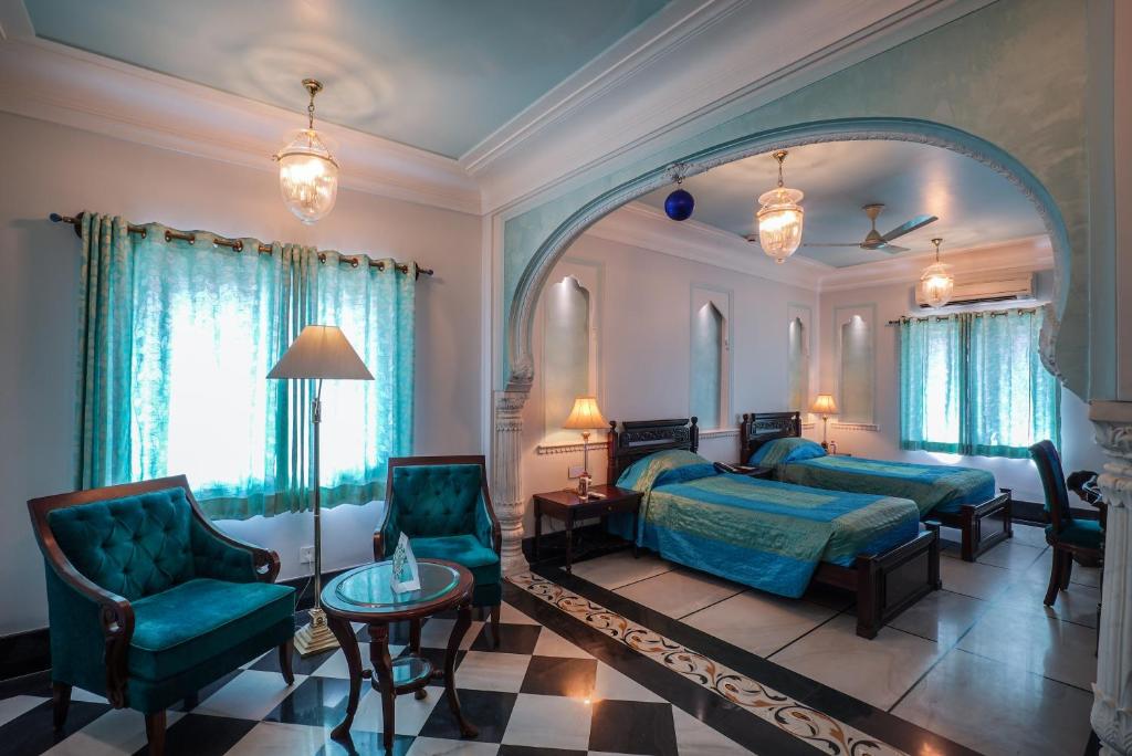 Featuring traditional Rajput architect, a mixture of Mughal and Indian, a facade with domes and frescoes, Shahpura House is also home to the ruling royal family. The hotel has a large pool, spa and wellness centre and unique accommodation with free WiFi.