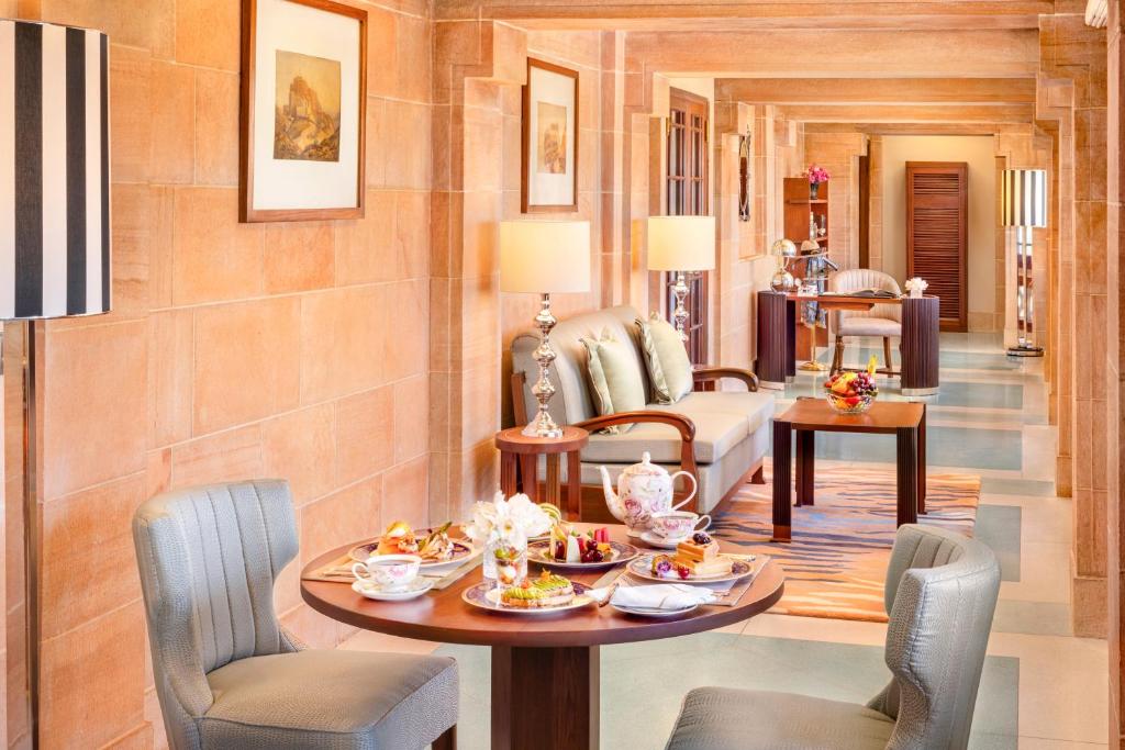 The unique Champagne Museum Walk invites guests to admire the fine collection of Victorian and Edwardian antiques with a glass of champagne in hand. Jiva Spa offers traditional Indian beauty therapies, as well as hot tubs and steam rooms. For the health conscious, a yoga studio, gym and tennis courts are provided.