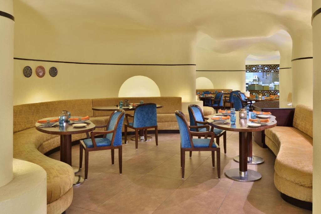 The restaurants in Jaipur Marriott hotel include Okra, an all-day dining global restaurant while Saffron serves contemporary Indian delights. The hotel also has a pastry shop on site, Jaipur Baking Company where guests can enjoy from a selection of gourmet sandwiches, soups and salads and a variety of coffees., Guest can unwind at its high-energy lounge bar 'Lounge 18'