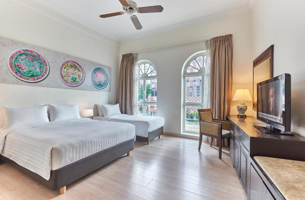 The rooms at Village Hotel Albert Court feature a modern interior with elements of Straits Chinese decor. Each air-conditioned room is equipped with an in-room safe and a flat-screen TV. The en suite bathroom includes shower facilities.